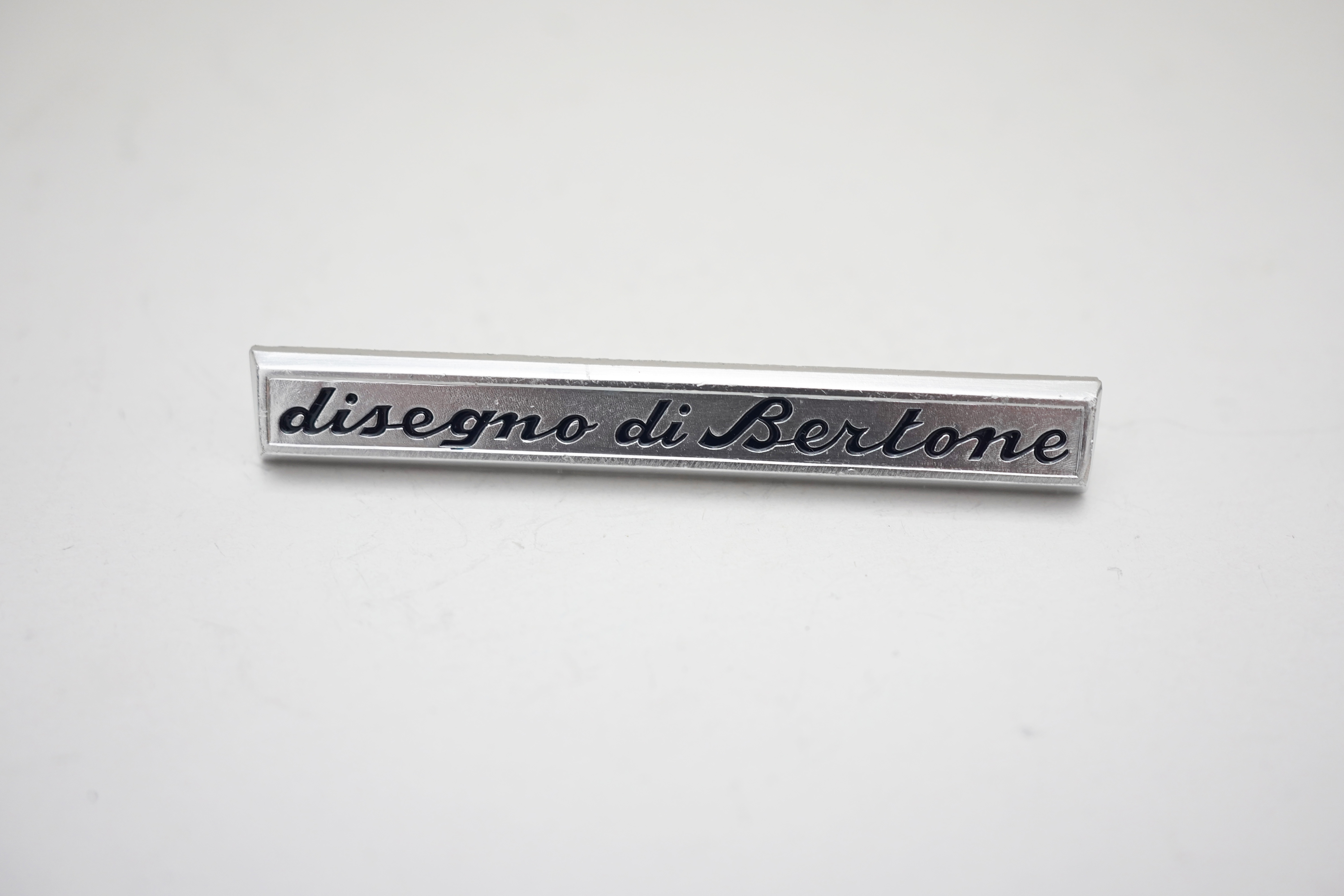 scritta “disegno di Bertone”, metallo
